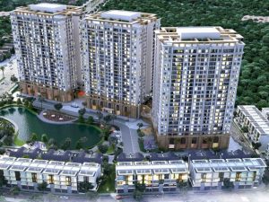 3 tòa nhà chung cư 25 tầng (2 hầm để xe, 2 tầng TTTM, tầng 3 trở lên gồm 1300 căn hộ).